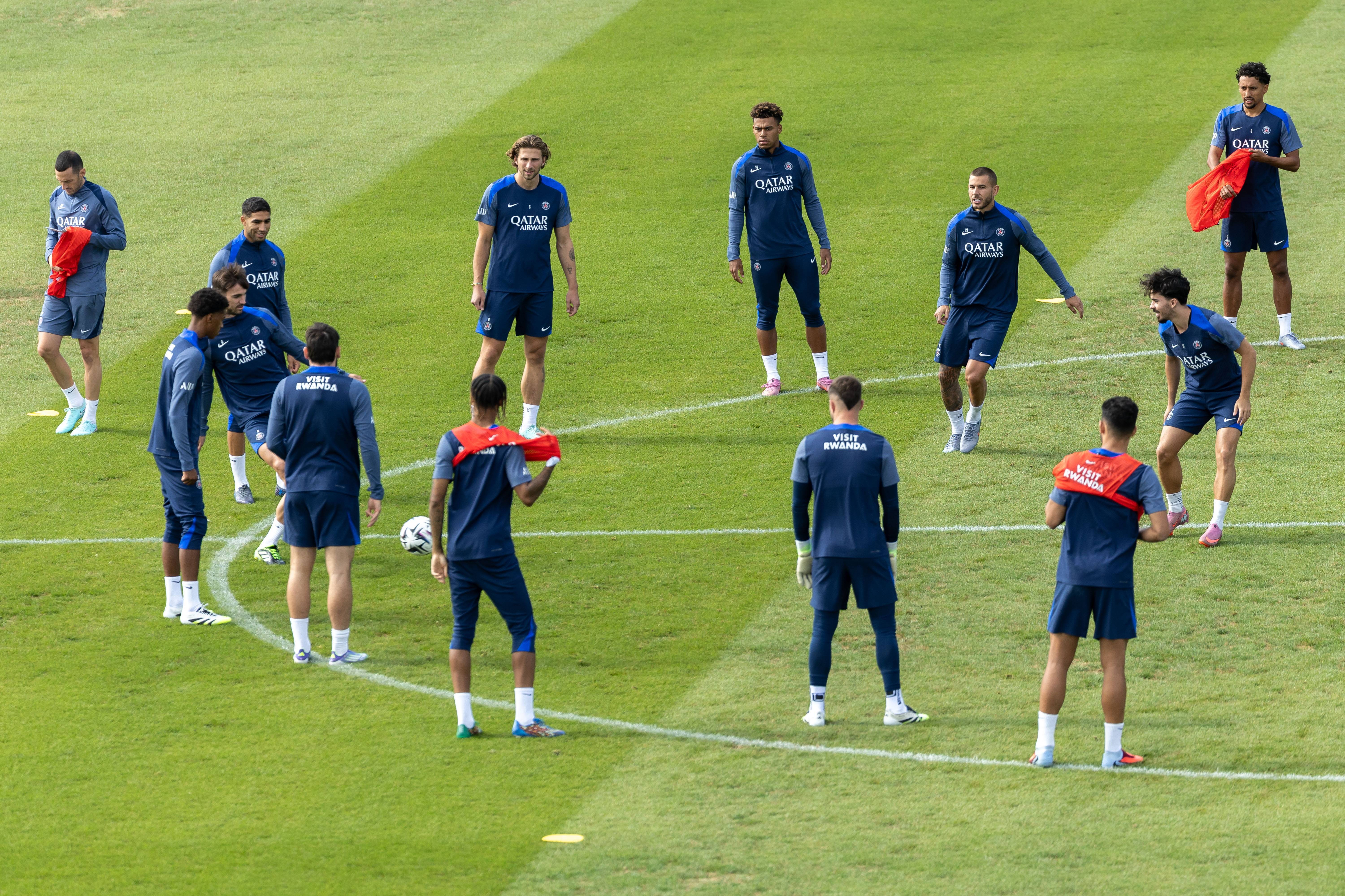 当日,巴黎圣日尔曼队在法国普瓦西进行赛前训练,备战22日与昂热队的法甲联赛。