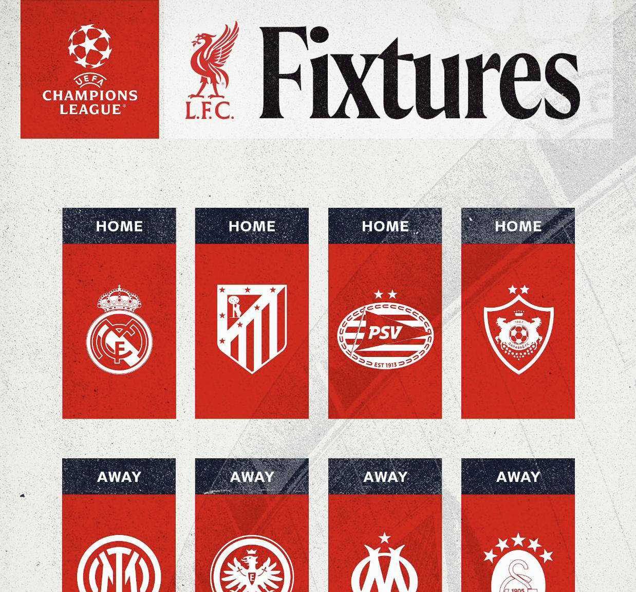 在本赛季欧冠比赛中,利物浦将分别主场迎战皇家马德里、马德里竞技、埃因霍温和卡拉巴赫,客场挑战国际米兰、法兰克福、马赛和加拉塔萨雷。赛程紧凑且充满挑战,再加上英超联赛内部竞争激烈,利物浦面临着一系列考验,球队阵容的厚度将受到考验。
