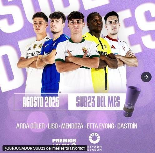 直播吧9月3日讯 西甲官方公布8月最佳U23球员候选名单,皇马小将居勒尔领衔。